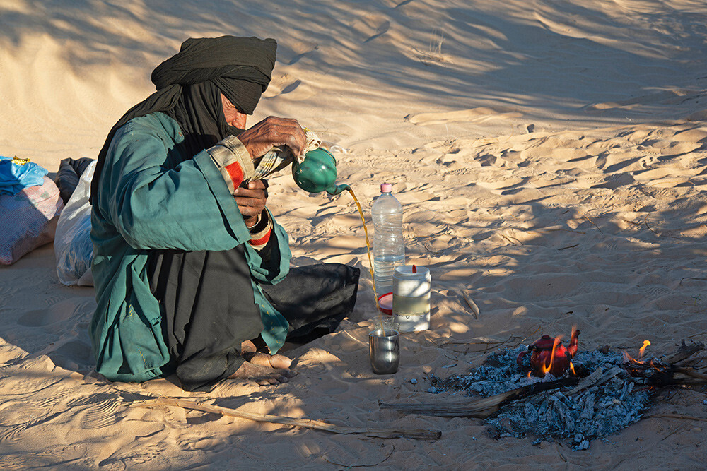 Голову покрывают не только женщины, но и мужчины. У туарегов лицо скрывает покрывало (тагельмуст): одним концом оно закрывает волосы и лоб, а другим — подбородок, рот и нижнюю часть носа. Открытыми остаются только глаза. Есть разные версии возникновения покрывала для мужчин, среди них и магические, и религиозные, но главное — право покрывать голову имеют лишь свободнорожденные туареги.